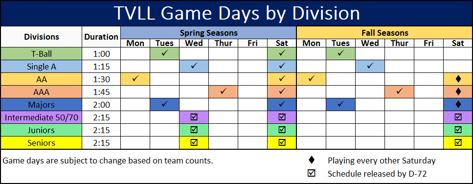 *Registration fees include a team hat and jersey. Players are expected to purchase their own belt, pants, socks, equipment (helmet, bat, cleats), and protective gear (like a cup or C-Flap for upper divisions).